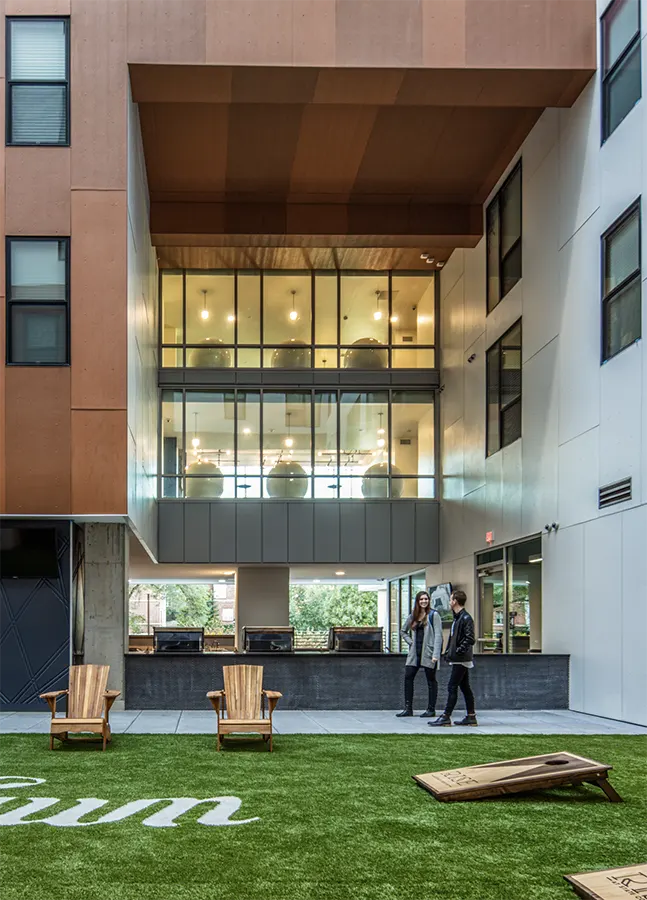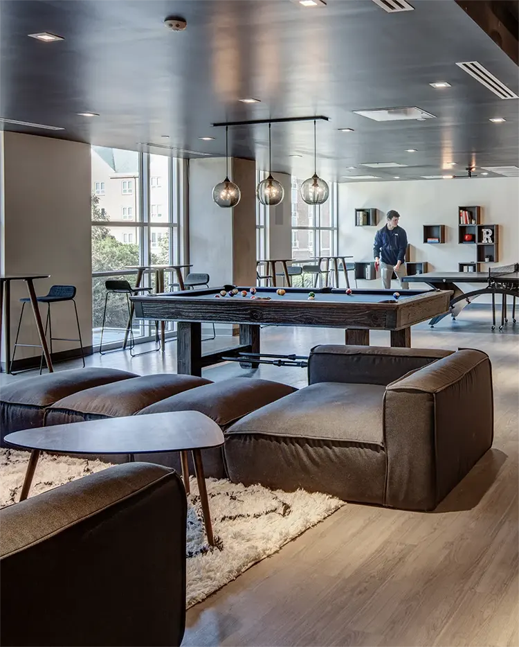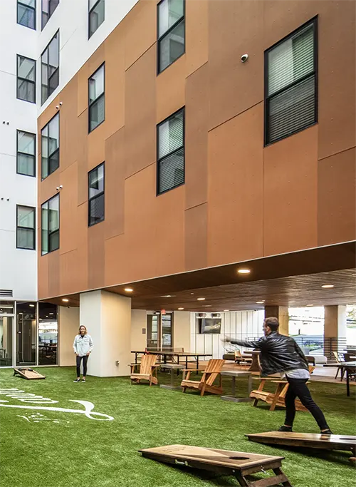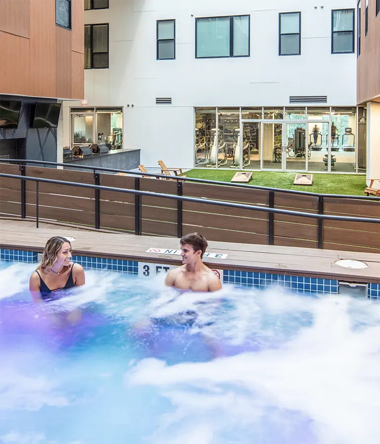Hit your goals in the decked-out fitness center, relax with friends in the fully stocked game room, hit the books in one of our various study spaces, or relax and play a round of corn hole on the courtyard. RISE has it all.